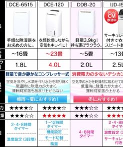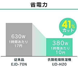 ハンドル付きハンドル付きで、持ち運び簡単。 家中どこでも気軽に使える。 また、スリムで場所を取らないので、狭い場所でも使える。 | 衣類乾燥以外でも大活躍衣類乾燥以外でも、湿気による様々な問題に役立つ。 | 省電力除湿パワーを見直し省電力化。 必要充分な除湿力のまま、電気代を41%カット。 |